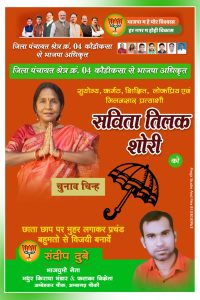 जिपं क्षेत्र क्र.04 कौडिकसा से सविता तिलक सोरी को चुनाव चिन्ह मिला “छाता”