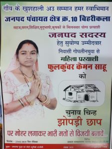जपं क्षेत्र क्र.10 बिहरीकला से फुलकुंवर केमन साहू को चुनाव चिन्ह मिला झोपड़ी छाप
