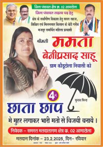 आमाटोला क्षेत्र में ममता साहू का प्रचार अब तेजी से बढ़ रहा है, और आगामी चुनावों में उनकी जीत की संभावना मजबूत मानी जा रही है।